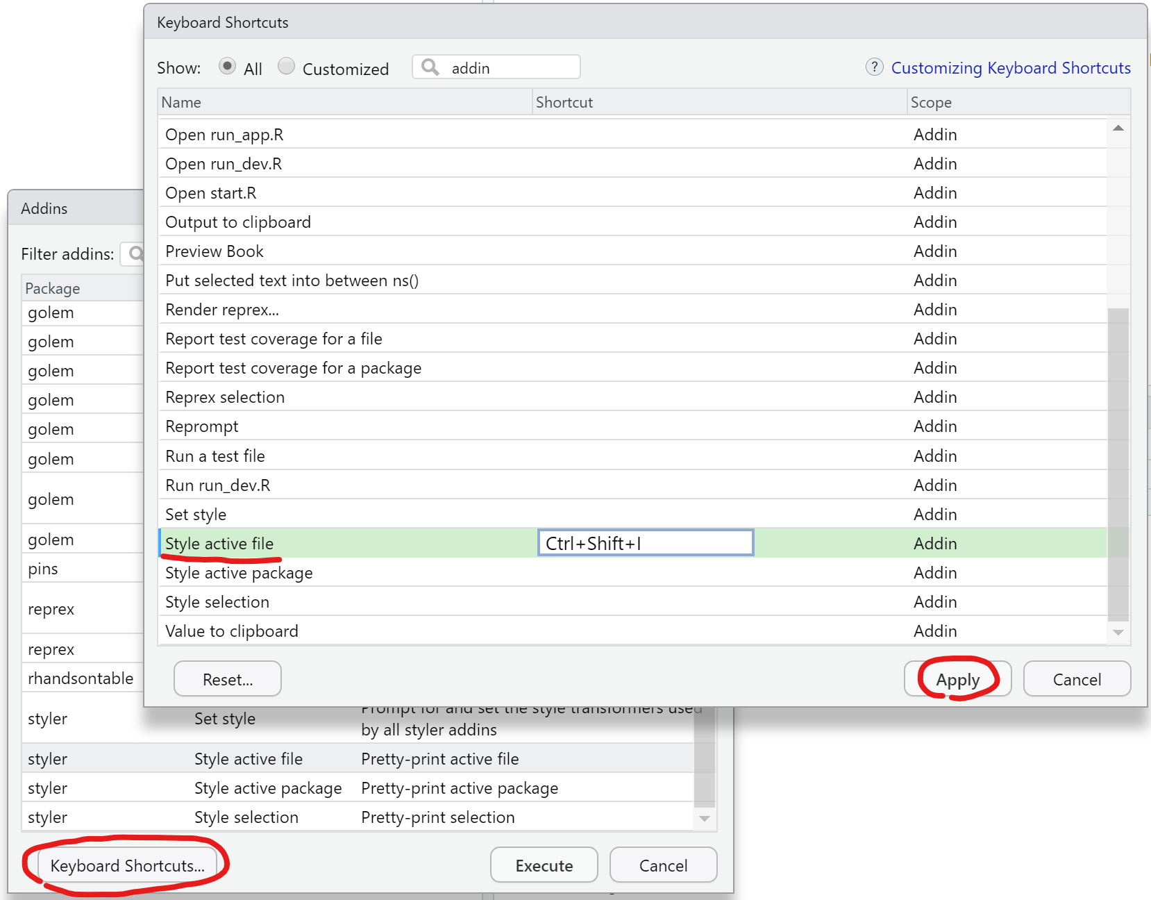 How to link the styler1 package to a keyboard shortcut: