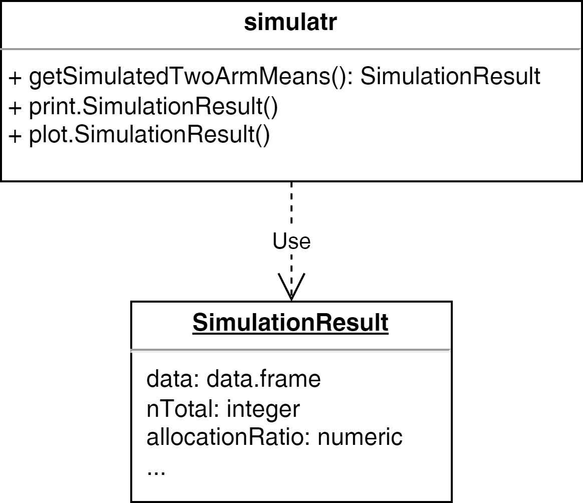 simulatr must provide a function to generate normal distributed random data for two independent groups. The function must allow flexible definition of sample size per group, mean per group, standard deviation per group. The reproducibility of the simulated data must be ensured via an optional seed. It should be possible to print the function result. The package may also facilitate graphical presentation of the simulated data.